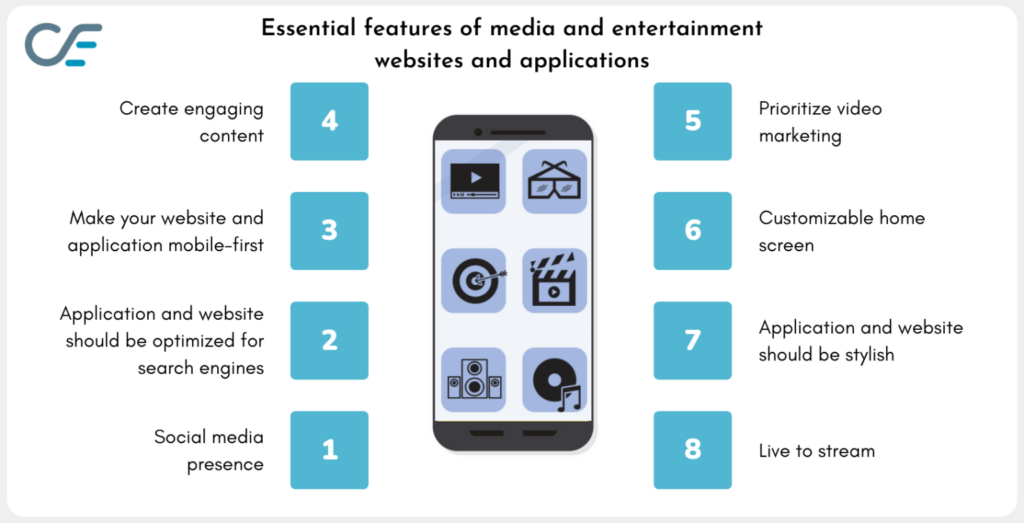8 Essential features of Media and Entertainment website and application